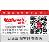 概述:消費者在購買已加入電碼防偽系統(tǒng)的企業(yè)所生產(chǎn)的產(chǎn)品時,在產(chǎn)品的包裝上可看到電碼防偽標簽。只要揭開標識的表層或刮開標識的涂層,就可以看到一由16位數(shù)字組成的密碼,此密碼是唯一的,只能使用一次,假冒者無法仿造重復使用。